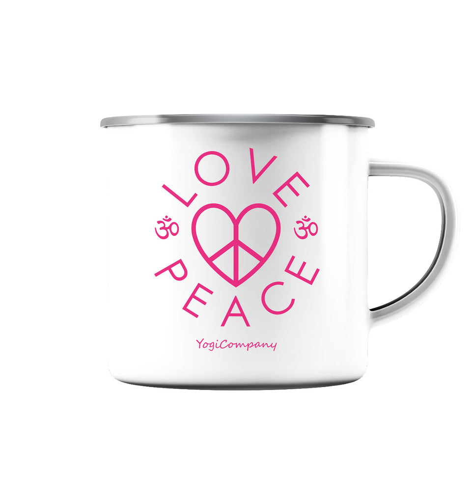 Love & Peace - pink - Emaille Tasse
